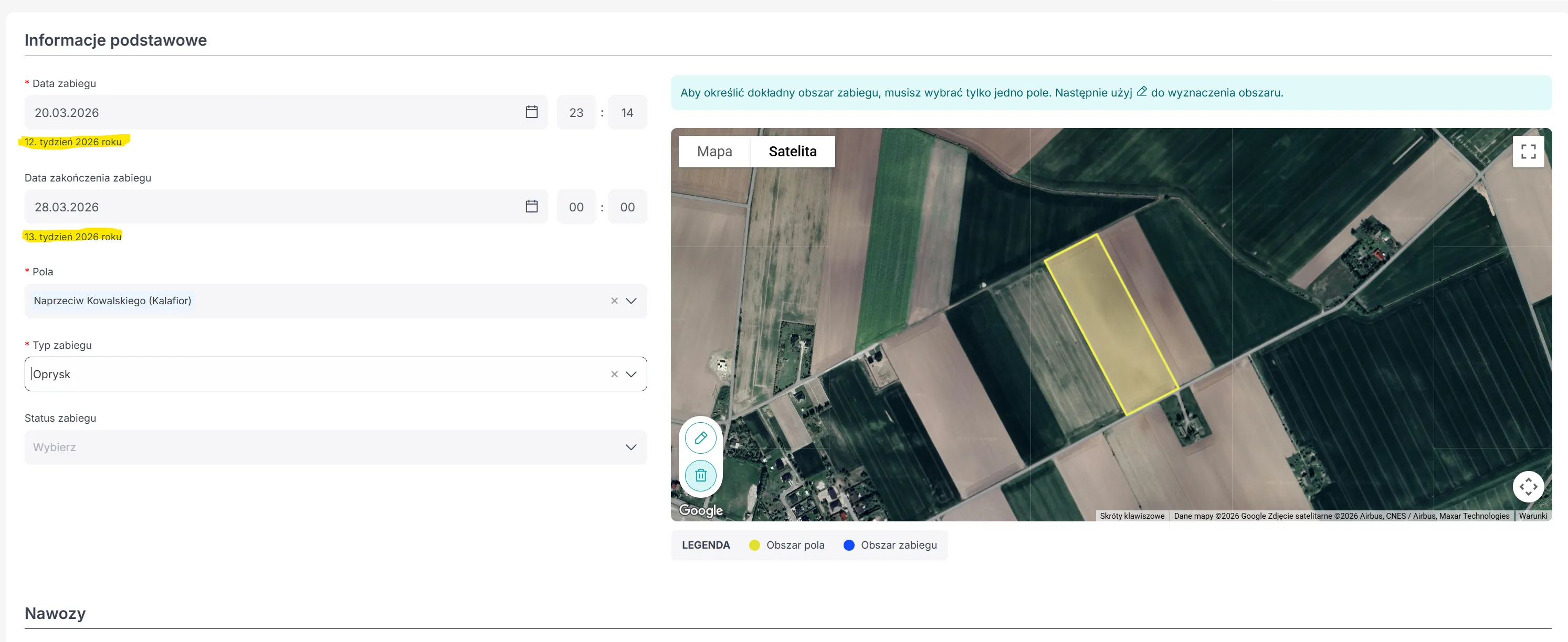 - termin planowanego rozpoczęcia zabiegu agrotechnicznego
